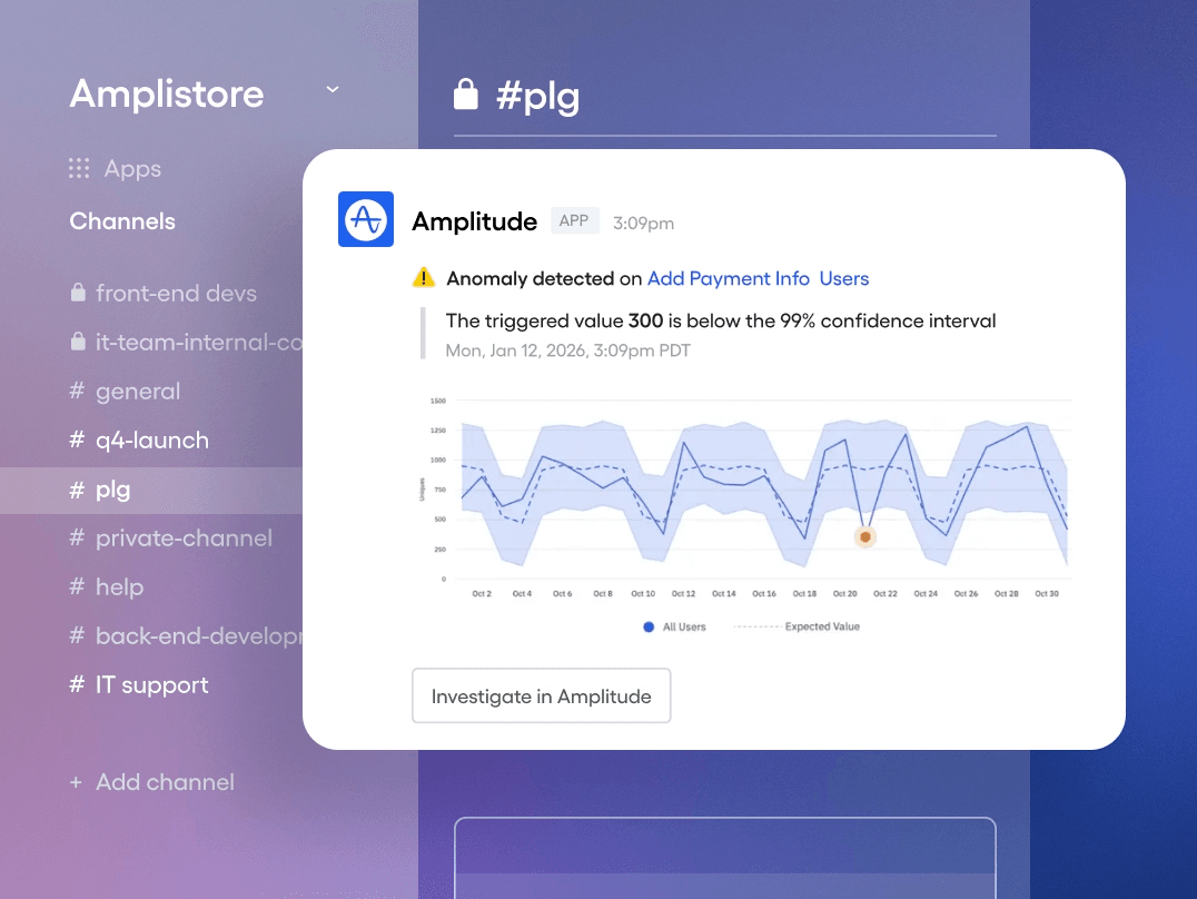 With instant visualizations, automated reports, and more, Amplitude gives all teams access to accurate, real-time insights while highlighting what’s actionable, so you can make smart decisions with confidence.