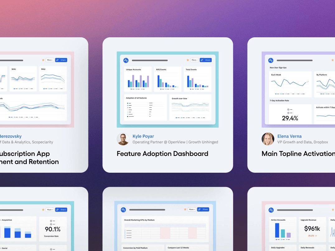 Everything you need to unlock customer growth: funnel analysis, retention analysis, event segmentation, data tables, user sessions, and more.