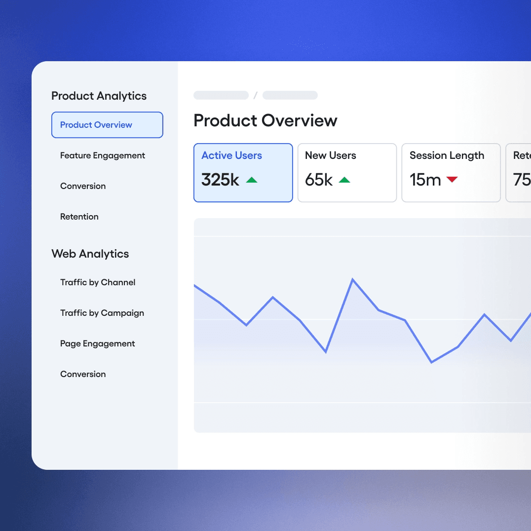 - Dive into conversion, retention, and feature engagement metrics to take action