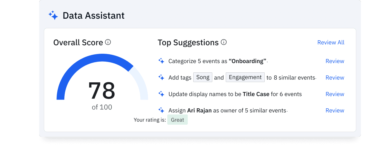 Les flux de travail basés sur l'IA mettent automatiquement en évidence les problèmes de qualité des données et recommandent des correctifs. Les filtres, la fusion de données et les contrôles de schéma facilitent l'établissement et le maintien de la confiance.