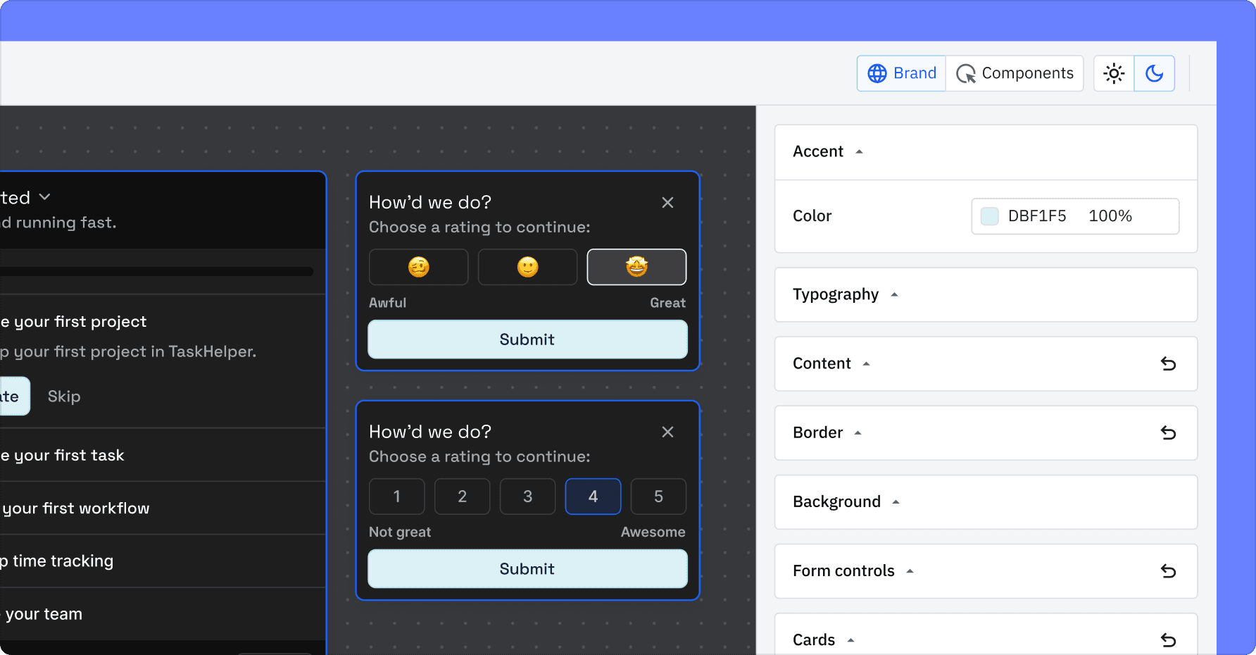 Create timely guides and surveys using built-in guardrails and prioritization logic to make sure users aren’t overwhelmed with back-to-back popups.