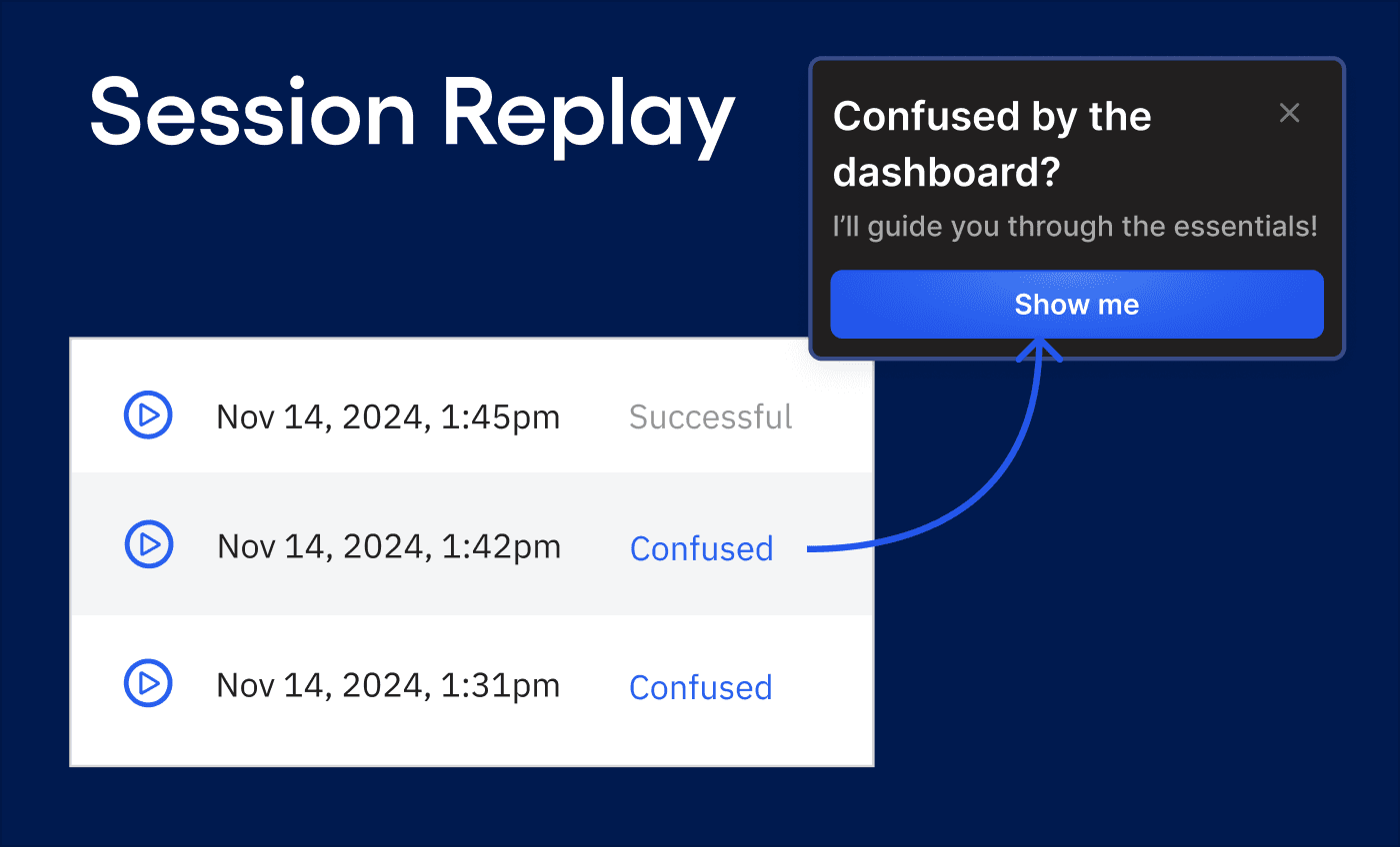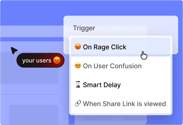 Set up triggers that match what users try to do in the moment. Prevent confusion, rage clicks, and more with contextually relevant information based on in-product behaviors.