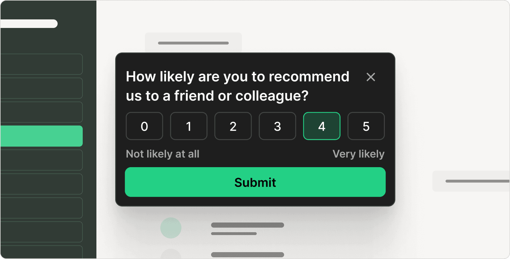 Love it or hate it, NPS is the most time-honored way to measure customer happiness. Keep a recurring pulse with surveys that don’t interrupt user flows.