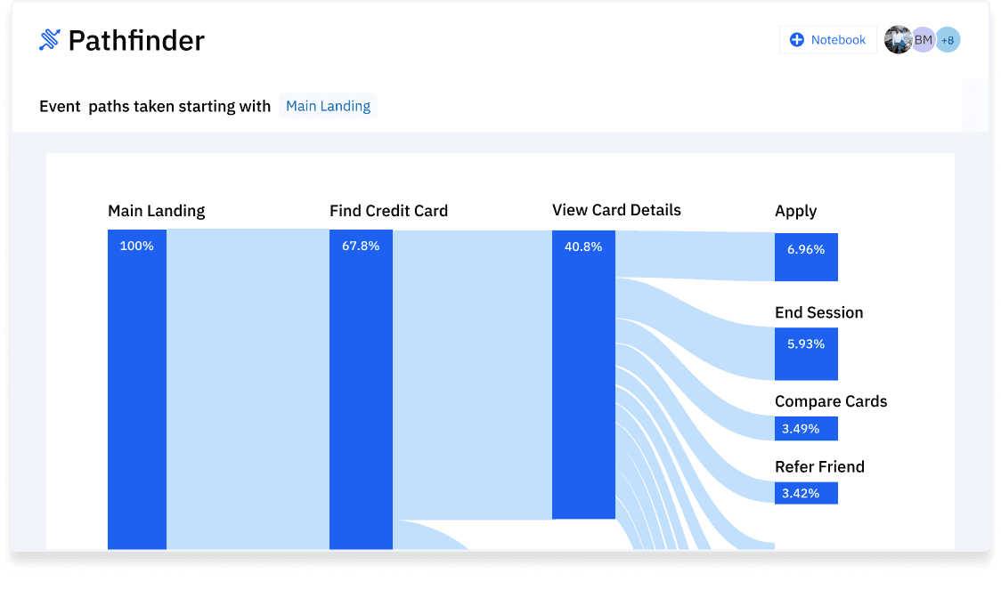 Identify behaviors, cohorts, and user paths that lead to cross-sells, upsells, and customer loyalty.