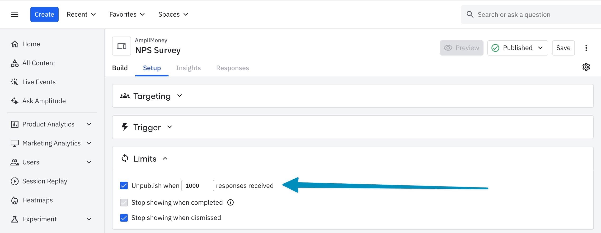Description: Simply set a custom response cap to have your survey automatically unpublish after reaching the desired number of responses.
