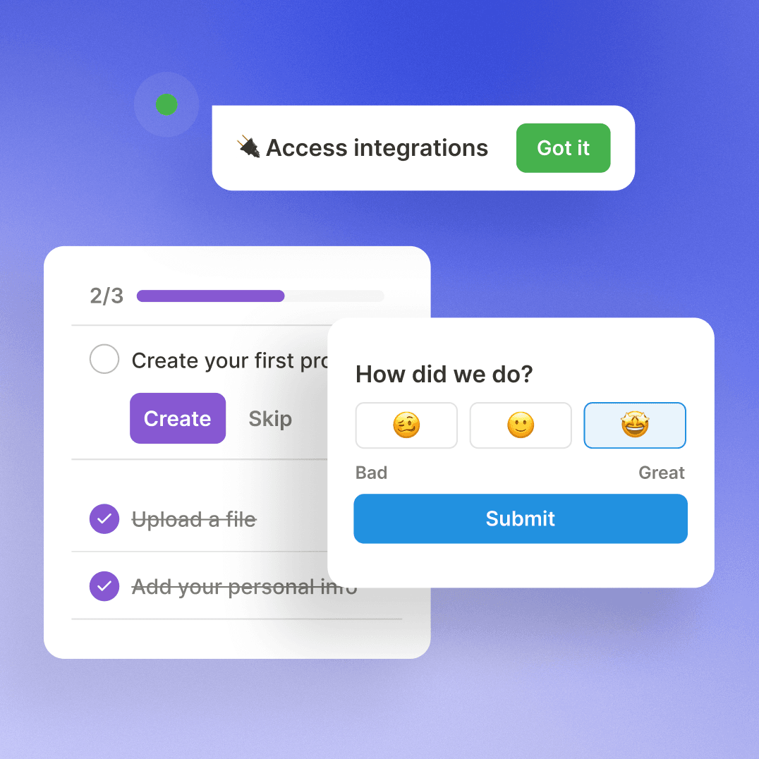 • Deploy targeted in-app Guides and Surveys to re-engage users and capture qualitative feedback instantly