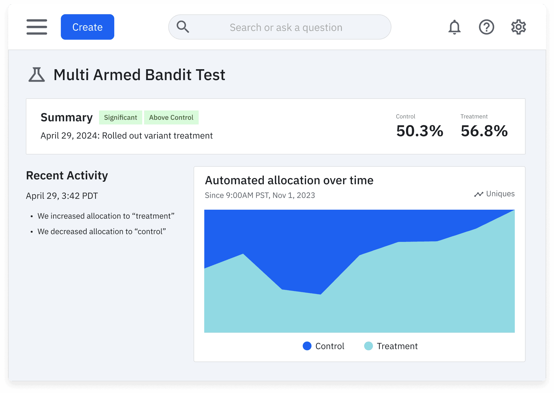 • Design with sequential testing, CUPED, multi-armed bandits, and more